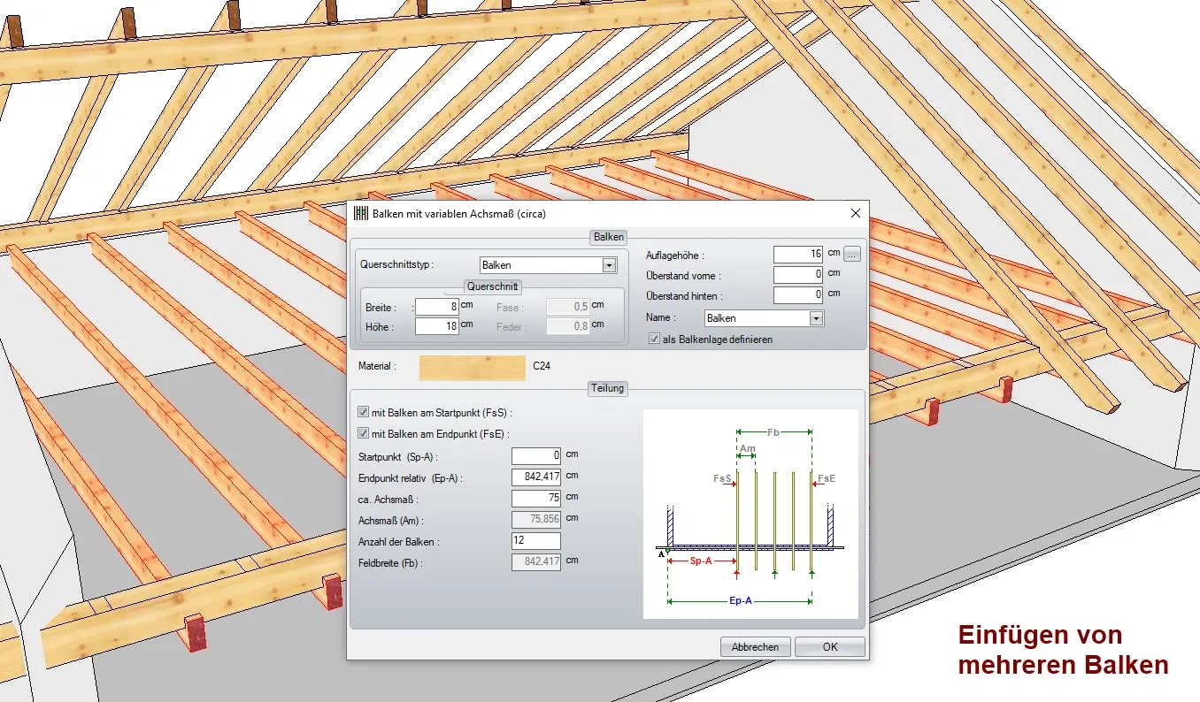 Erstellen von Balken-, Zangen-, & Sparrenlagen