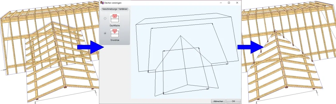 Dachflächen verschmelzen auf Knopfdruck (Dachausmittlung)